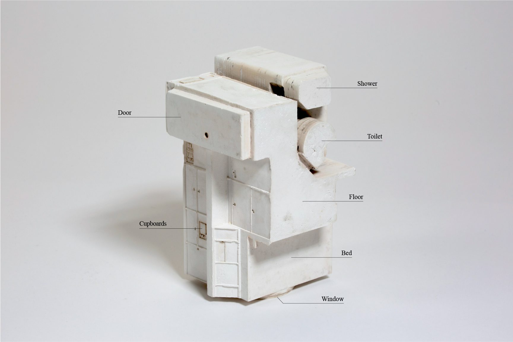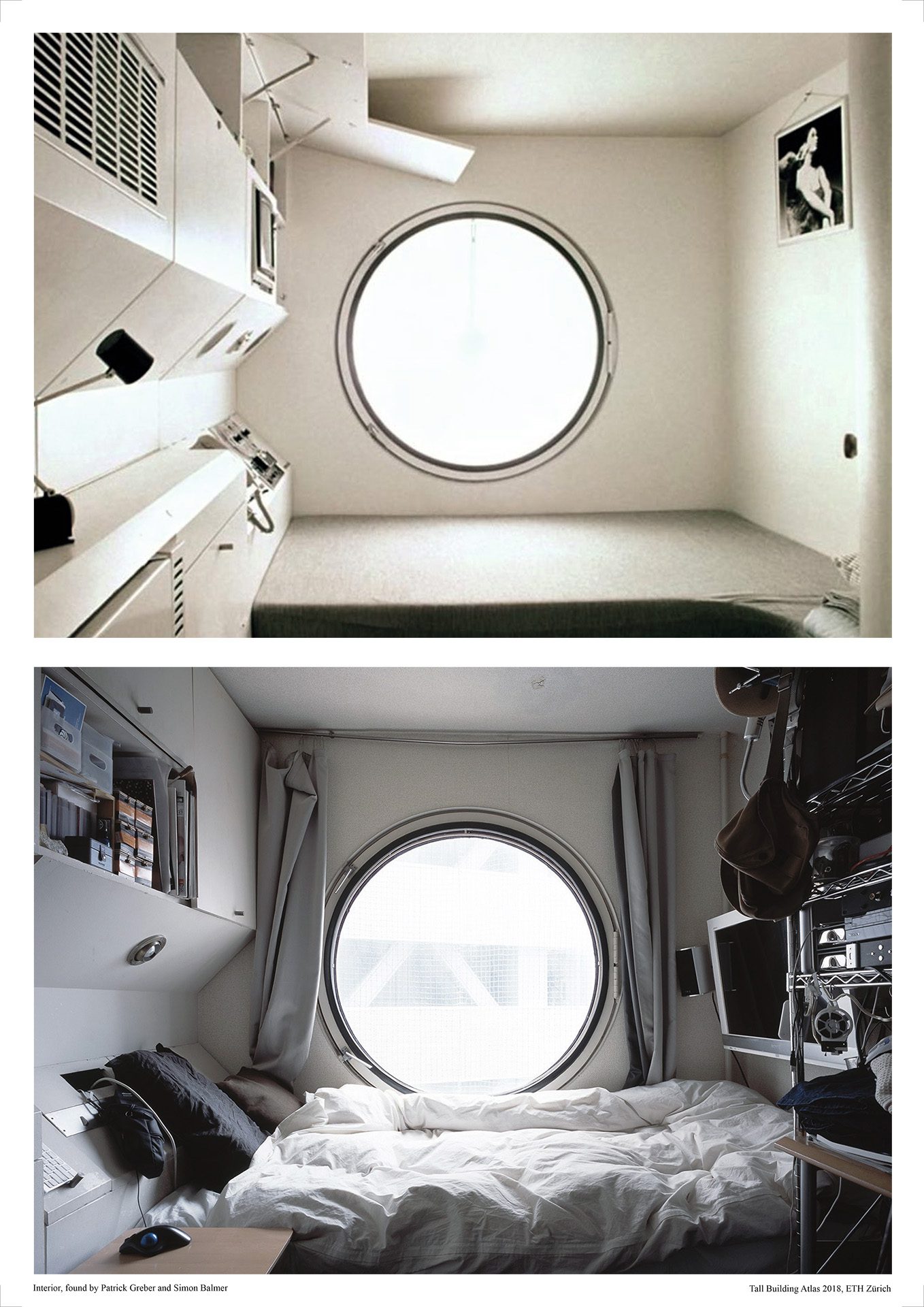 The building consists of 2 independent cores, from which a total of 140 residential modules are suspended. One Module has the dimensions of 2.3m × 3.8m × 2.1m. It was planned to replace the capsules after about 25 years and bring them up to the latest technological standards, but this was unfortunately never done.